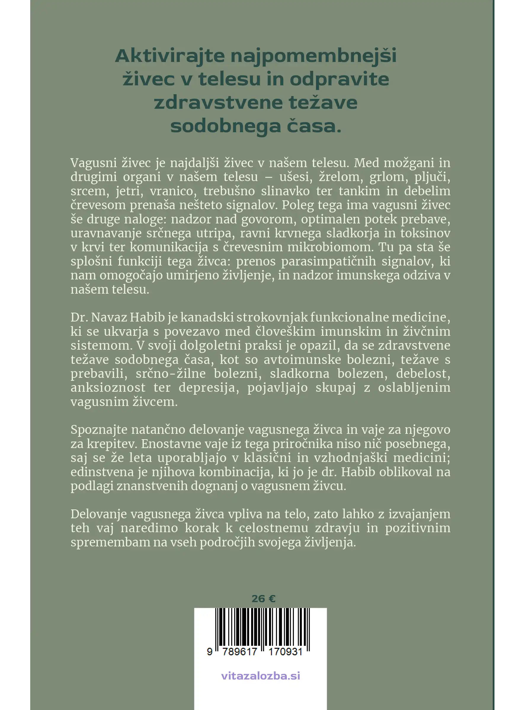 Dr. Navaz Habib je kanadski strokovnjak funkcionalne medicine, ki se ukvarja s povezavo med človeškim imunskim in živčnim sistemom. V svoji dolgoletni praksi je opazil, da se zdravstvene težave sodobnega časa, kot so avtoimunske bolezni, težave s prebavili, srčno-žilne bolezni, sladkorna bolezen, debelost, anksioznost ter depresija, pojavljajo skupaj z oslabljenim vagusnim živcem.