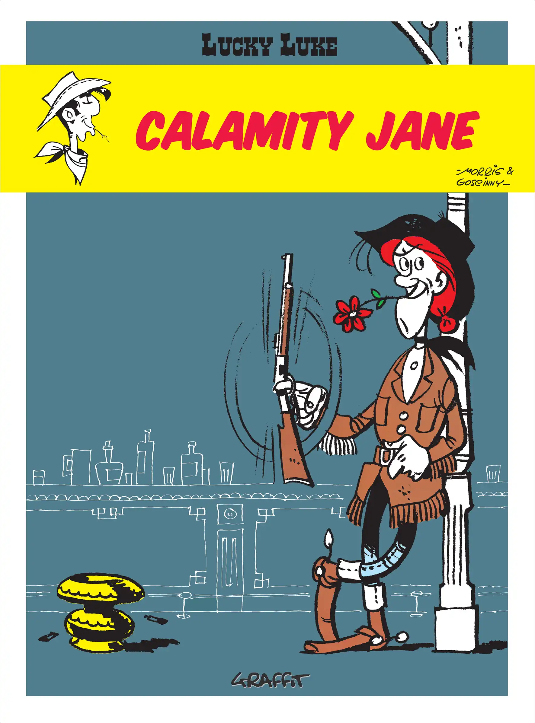Zakaj je Calamity Jane največja frajerka med kavbojkami Divjega zahoda? Ker je ena in edina Calamity Jane salamensko neustrašna in vsakemu kar takoj pove, kar mu gre, ker naredi, kar se njej zdi prav in ker čisto po naključju sreča še enega velikega junaka Divjega zahoda … in to je sloviti Lucky Luke! Skupaj se podata novi dogodivščini naproti in malo mestece rešita zločinske tolpe, predvsem pa predsodkov!