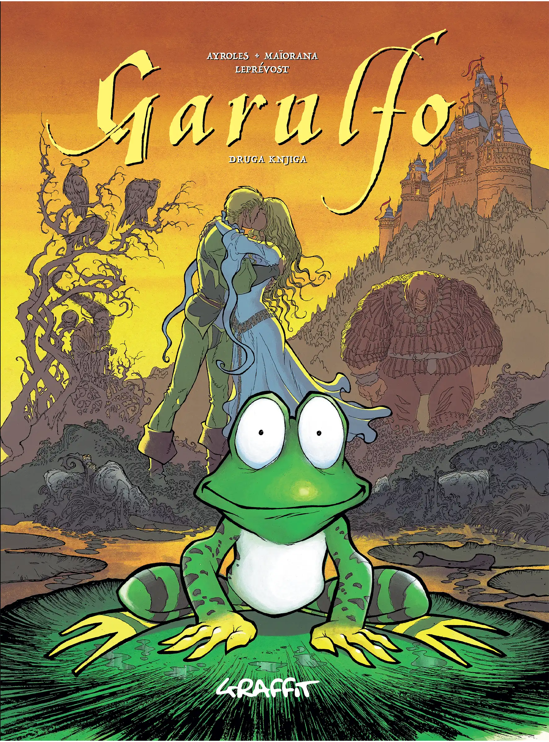 V drugi knjigi se nadaljuje in konča zgodba o žabcu Garulfu, ki je v osnovi na glavo obrnjena pravljica, v kateri poljub spremeni žabca v princa, a se v tej sodobni družinski pravljici hkrati skriva kritika človeške družbe. Odlična večplastna zgodba ponuja mlajšim obilo užitkov v akciji in humorju ter asociacijah na znana dela, kot so npr. Žabji kralj, Trnuljčica, Obuti maček, Lepotica in zver itd, nekoliko bolj razgledani pa v njej lahko najdejo še dodatne aluzije in kulturne reference od npr. Rostandovega Cyrana de Bergeraca do nekaterih del popularne kulture, zlasti filmske.