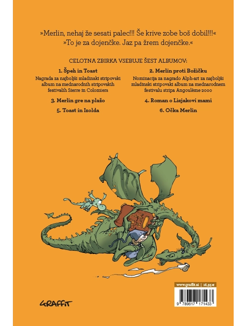Kakšno srečo imamo, da smo se znova srečali s to malo očarljivo nadlogo – mladim Merlinom, ki ga spremljata najbolj simpatični grdobec Toast in pujs Špeh, edini, ki ima ščepec zdrave pameti, kar pa za pujsa ni vedno lahko!