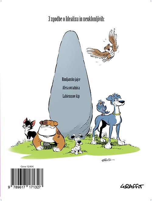 Tri nove zgodbe (Rimljansko jajce, Afera ovratnica in Labienusov kip) kužka, ki ga poznamo iz Asteixa v stripu in pravkar spremljamo na Pop TV.